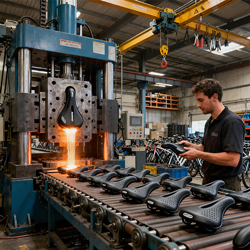 साइकिल सैडल इंजेक्शन मोल्डिंग साइकिल सैडल मुख्य निकायों, समर्थन संरचनाओं या सुरक्षात्मक घटकों के लिए एक विशेष इंजेक्शन प्रक्रिया है। पिघले हुए प्लास्टिक को अनुकूलित सांचों में इंजेक्ट करके, यह साइकिल सैडल घटकों का निर्माण करता है जो एक ही बार में एर्गोनोमिक और यांत्रिक आवश्यकताओं को पूरा करते हैं। यह प्रक्रिया विभिन्न प्रकार की साइकिलों जैसे माउंटेन बाइक, रोड बाइक और शहरी कम्यूटर बाइक के लिए सीटें बनाने के लिए उपयुक्त है, जिसमें सैडल शेल, शॉक-एब्जॉर्बिंग सपोर्ट ब्लॉक और बॉटम रीइन्फोर्समेंट फ्रेम सहित मुख्य उत्पाद शामिल हैं।
