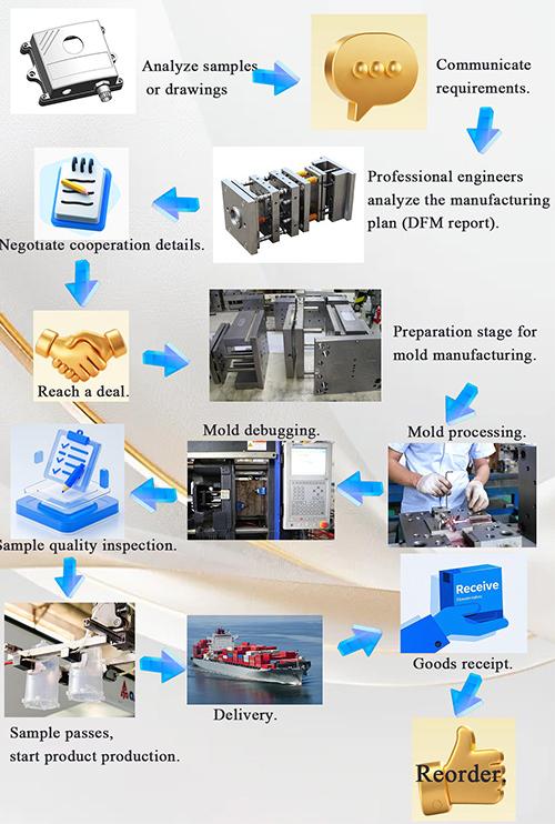 ऑडिट ड्राइंग - मोल्ड प्रवाह विश्लेषण - डिजाइन सत्यापन - कस्टम सामग्री - मोल्ड प्रोसेसिंग - कोर प्रोसेसिंग - इलेक्ट्रोड मशीनिंग - रनर सिस्टम प्रोसेसिंग - पार्ट्स प्रोसेसिंग और खरीद - मशीनिंग स्वीकृति - कैविटी सतह उपचार प्रक्रिया - जटिल मोड डाई - संपूर्ण मोल्ड सतह कोटिंग - माउंटिंग प्लेट - मोल्ड नमूना - नमूना परीक्षण - नमूने भेजना |