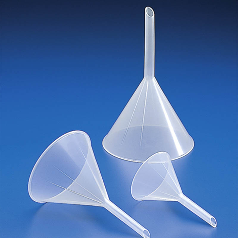 2. लोंग-स्टेम प्लास्टिक फ़नल: संकीर्ण उद्घाटन या कंटेनरों में पहुंचने के लिए लम्बी तनों के साथ फ़नल।