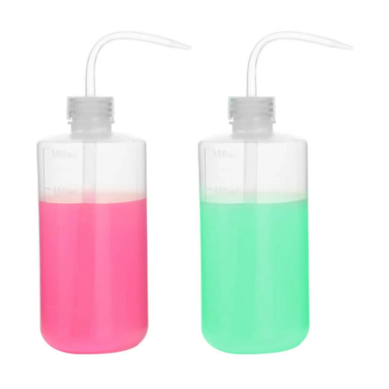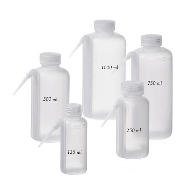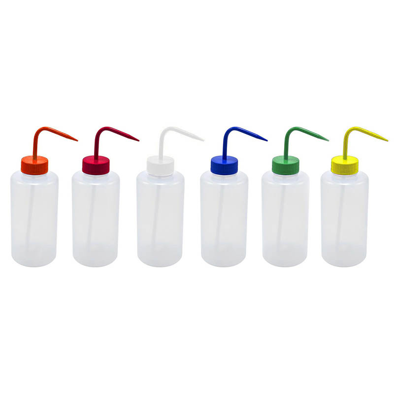 3.-मुंह से प्लास्टिक वॉश बोतलें: आसान भरने और सफाई के लिए चौड़े उद्घाटन के साथ बोतलें।
