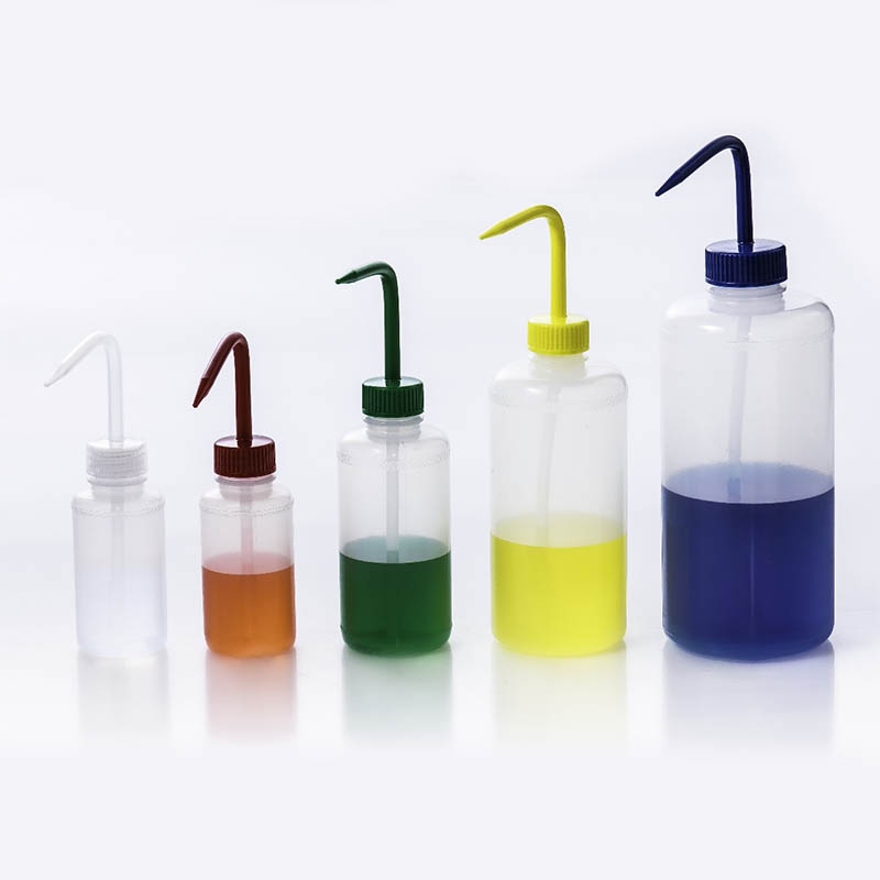1.Squeeeze- प्रकार प्लास्टिक वॉश बोतलें: तरल पदार्थों के नियंत्रित वितरण के लिए एक निचोड़ डिजाइन के साथ बोतलें।